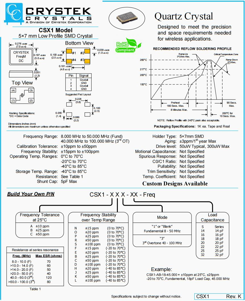 Crystek晶振 Crystek石英晶振 -