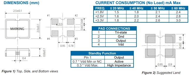 Size/Dimension尺寸 2520mm晶振 最小包裝數(shù)MPQ: 3000