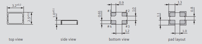 | Size/Dimension尺寸 | 3.20mm x 2.50mm | 最小包裝數(shù)MPQ: | 3000 |