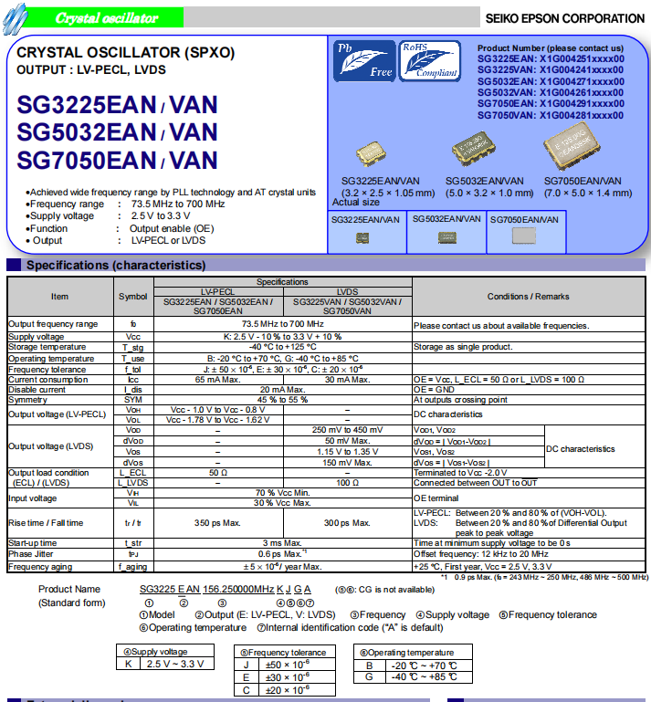 | X1G0042610033 | SG5032VAN | 156.250000 MHz | 5.00 x 3.20 x 1.20 mm | LVDS |