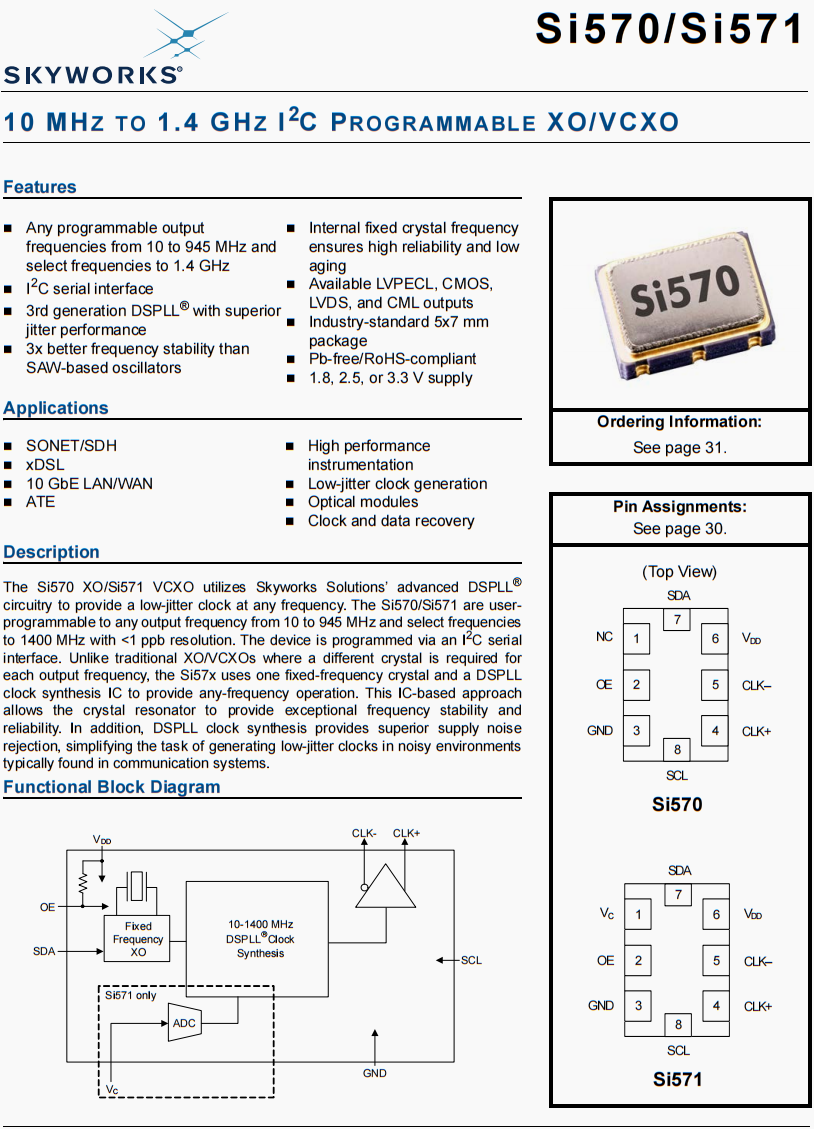 | 570BCC000112DG | Skyworks晶振 | Si570 | XO | 10 MHz | LVDS | 3.3V |