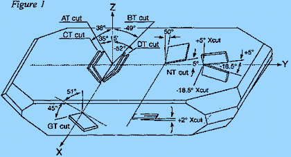 無(wú)線應(yīng)用中最常用的晶體切割角度是AT切割(見(jiàn)圖1),以這種方式制造的石英晶體可以以相對(duì)高的頻率獲得,表現(xiàn)出優(yōu)異的頻率與溫度穩(wěn)定性,并且成本適中,從1MHz到1GHz以上的基本諧振頻率是可能的,但由于價(jià)格和其他限制,大多數(shù)AT切割晶體的基本頻率在1.8到40MHz之間,AT切割晶體的諧振模式(泛音)大約是基模的奇數(shù)倍(見(jiàn)圖2),為這些泛音指定的石英晶振通常落在24至200MHz的頻率范圍內(nèi).