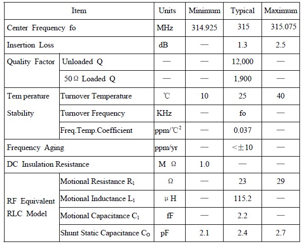 聲表插件晶振,R315M聲表面濾波器,D11諧振器