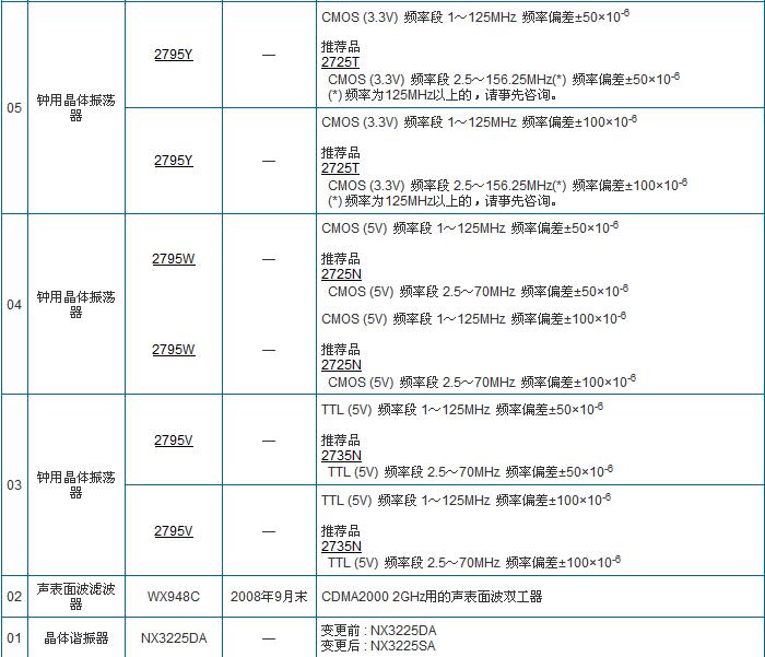 以下是金洛鑫電子為廣大新老客戶整理的NDK晶振停產(chǎn)更新表: