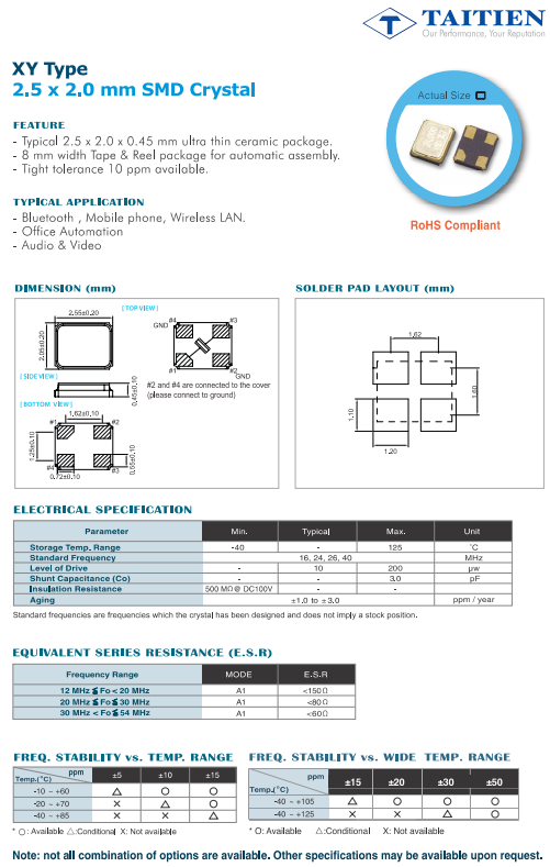 | XYAEECNANF-26.000000 | Taitien晶振 | XY | 26MHz | -20°C ~ 70°C | 0.100" L x 0.081" W (2.55mm x 2.05mm) |