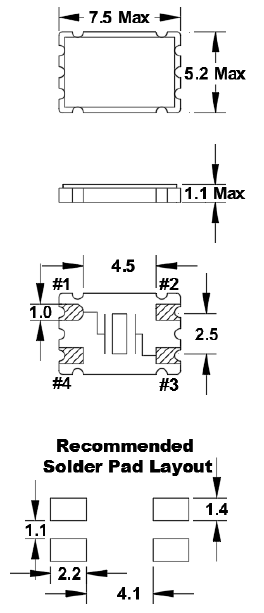 | Frequency Stability頻率穩(wěn)定度 | ±30ppm | 高度 Package Height: | 1.10mm |