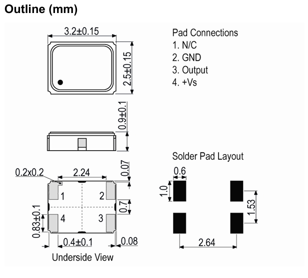 | Frequency頻率 | 20MHz | Termination 腳位 | 4-pad |