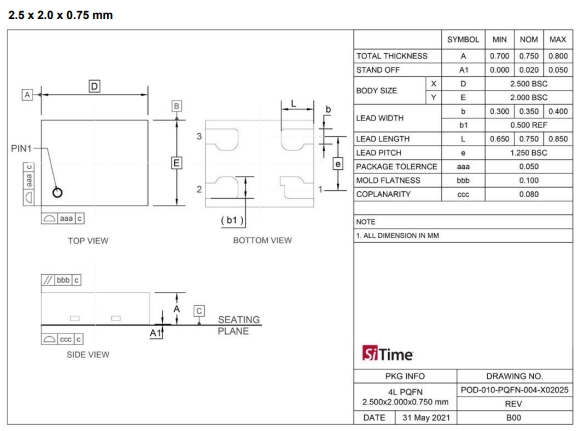 | Manufacturer品牌 | SiTime晶振 | Operating Temperature溫度 | -20°C to 70°C |