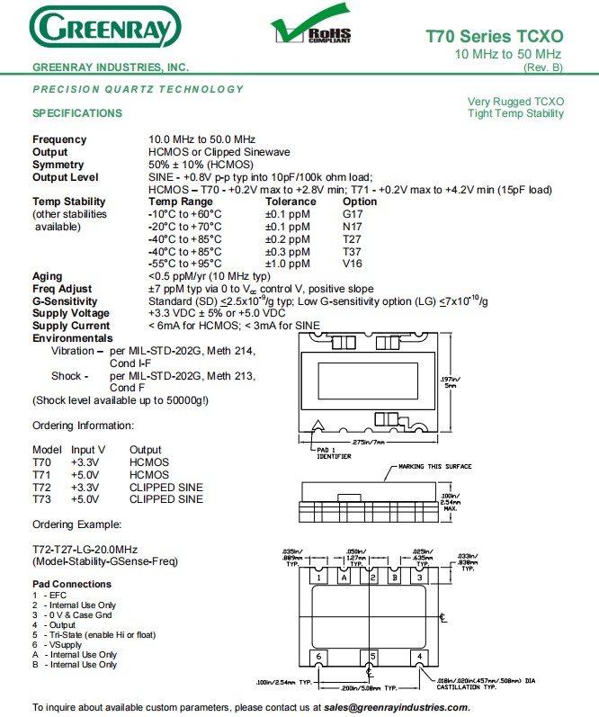 格林雷晶振,T70-N17-LG-10.0MHz-E溫補(bǔ)晶振,6G通訊衛(wèi)星晶振