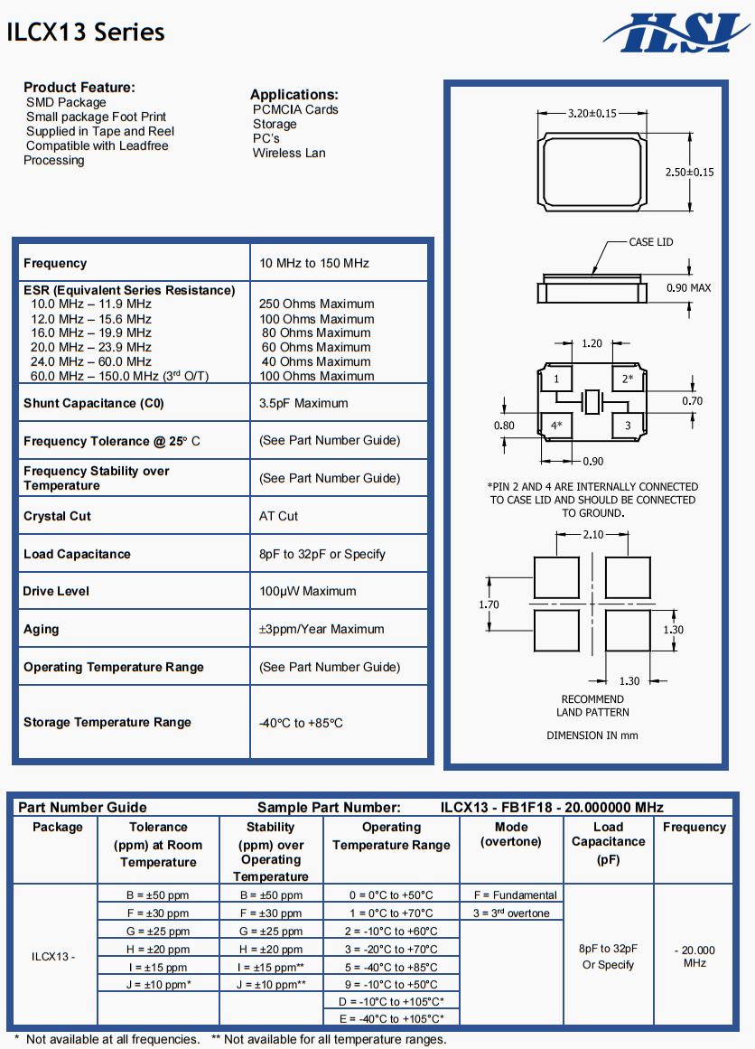 | ILCX13-HB3F18-12.000MHZ | ILSI | ILCX13 | 12 MHz | ±50ppm | ±20ppm | 18pF |