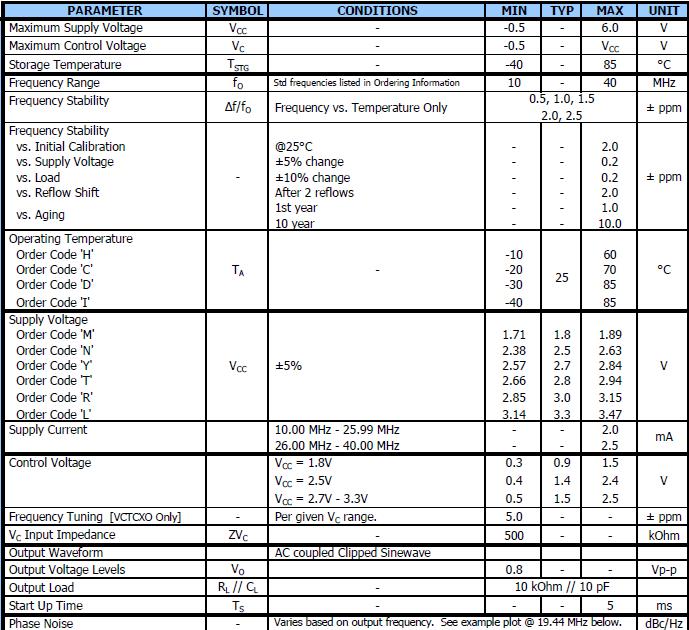 頻率精度高0.5 PPM-2.0 PPM,工作溫度范圍:-30度至85度,電源電壓:1.8V-3.3V之間可供選擇,剪正弦波輸出,可選電壓控制頻率調(diào)諧(VCTCXO),3.2 mmx2.5mm表面安裝包,頻率范圍10 - 40 MHz(標(biāo)準(zhǔn)頻率列表所示),基本晶體設(shè)計,頻率穩(wěn)定度,幾個選項可供選擇±0.5 ppm ~±2.5 ppm,操作電壓,+ 1.8 vdc ~ + 3.3伏直流.操作溫度為-40°C + 85°C,磁帶和卷軸包裝,符合RoHS /綠(6/6).