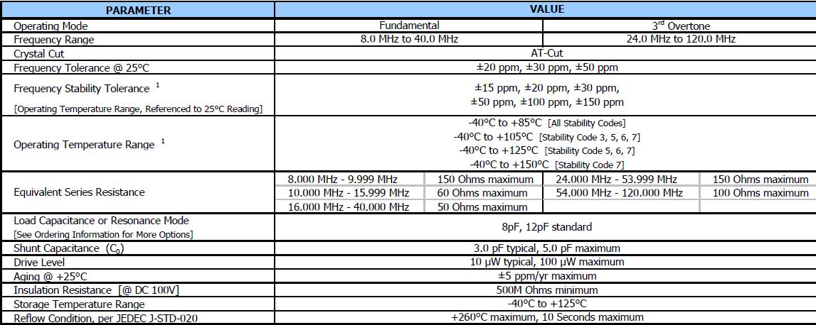 標準5.0毫米x 3.2毫米玻璃密封包,基本晶體設計,頻率范圍8 - 40 MHz基本,24 - 120 MHz第三泛音,頻率公差;±20 ppm,±30 ppm和±50 ppm,頻率穩(wěn)定度,參考訂購信息,操作溫度,-40°C + 125°C標準,磁帶和卷軸包裝標準,eia - 481,通過無鉛認證符合歐盟指令2011/65 /歐盟,無鉛終止完成,豁免7(c)-我,電氣和電子元件含鉛玻璃(Pb).
