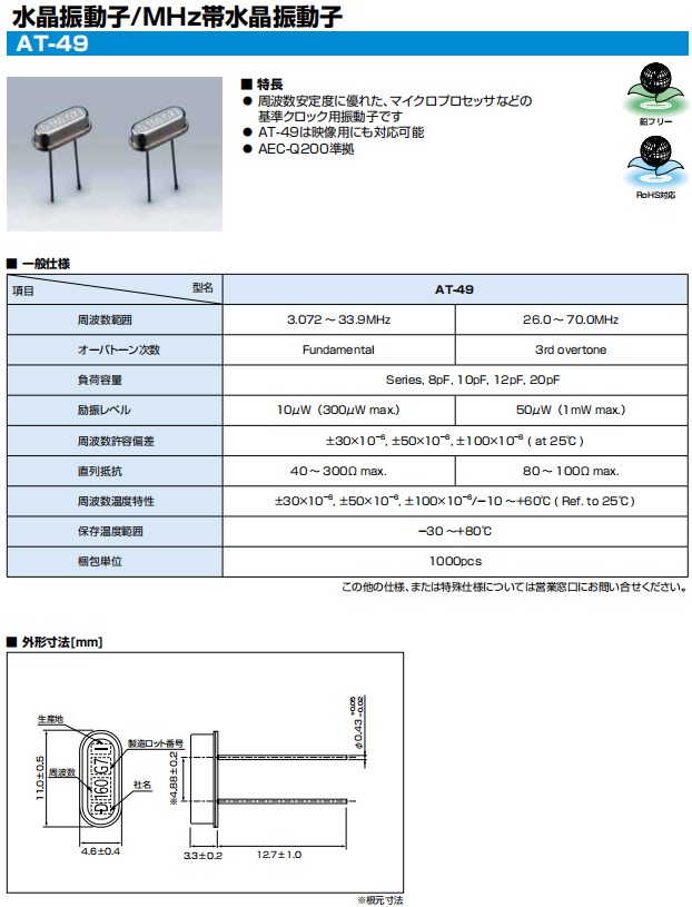 - 產(chǎn)品描述:日本KDS大真空晶振,AT-49插件晶振,1AC112893EA進口晶振,無源晶振,兒童玩具晶振,插件石英晶振最適合用于比較低端的電子產(chǎn)品,比如兒童玩具,普通家用電器,即使在汽車電子領(lǐng)域中也能使產(chǎn)品高可靠性的使用.并且可用于安全...