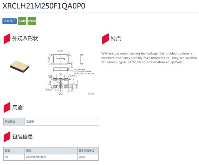 - 產(chǎn)品描述:XRCLH21M250F1QA0P0,頻率21.25MHz,工作溫度-30~85℃,尺寸5032mm,負(fù)載8pf,高精度晶振,數(shù)字通信設(shè)備晶振,測(cè)量?jī)x器晶振,微處理器晶振,數(shù)碼音影系統(tǒng)晶振.