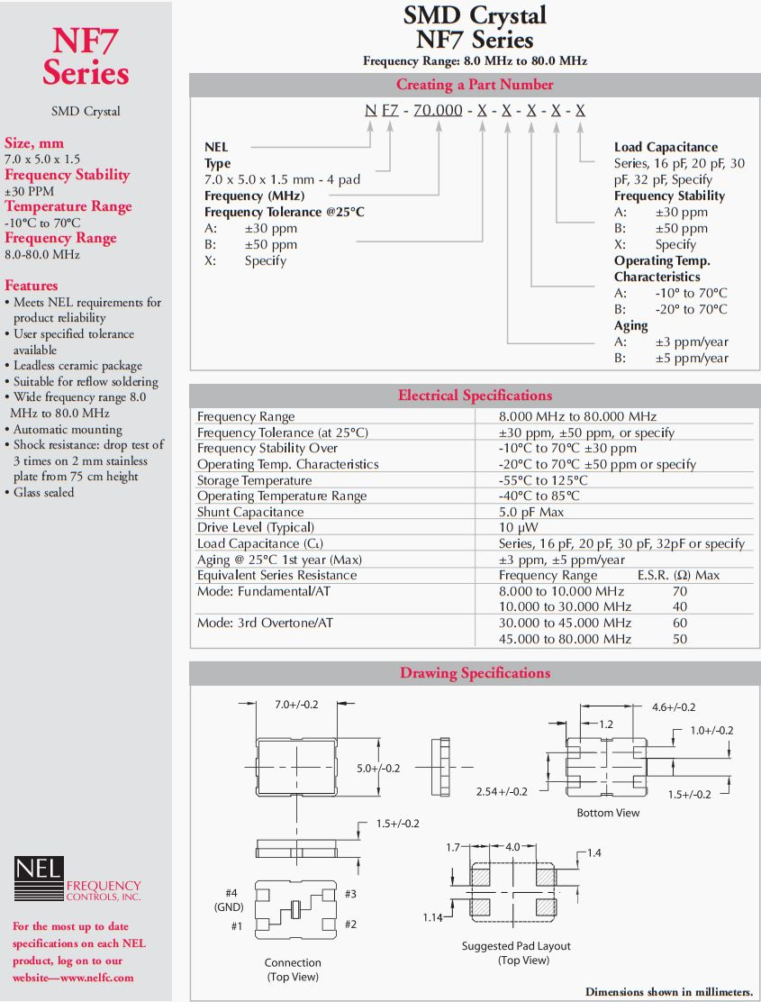 NEL晶振,NF7-48.000-ABBA20PF四腳晶振,6G路由器晶振,NEL晶振公司,歐美晶振,符合NEL產(chǎn)品可靠性要求,用戶指定公差,無(wú)鉛陶瓷封裝,適用于回流焊,寬頻率范圍8.0 MHz至80.0 MHz,自動(dòng)安裝,抗沖擊:在2mm不銹鋼板上從75厘米高度跌落試驗(yàn)3次,玻璃密封,7050晶振,石英晶振,貼片晶振,無(wú)源晶振,環(huán)保無(wú)鉛晶振,符合國(guó)際標(biāo)準(zhǔn)