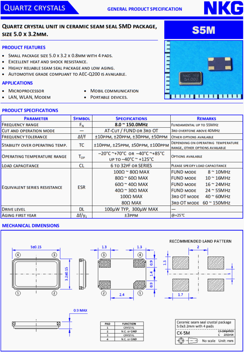 S5M27.1200F16MYY-EXT環(huán)保晶振,NKG5032晶體,6G型號發(fā)射器晶振