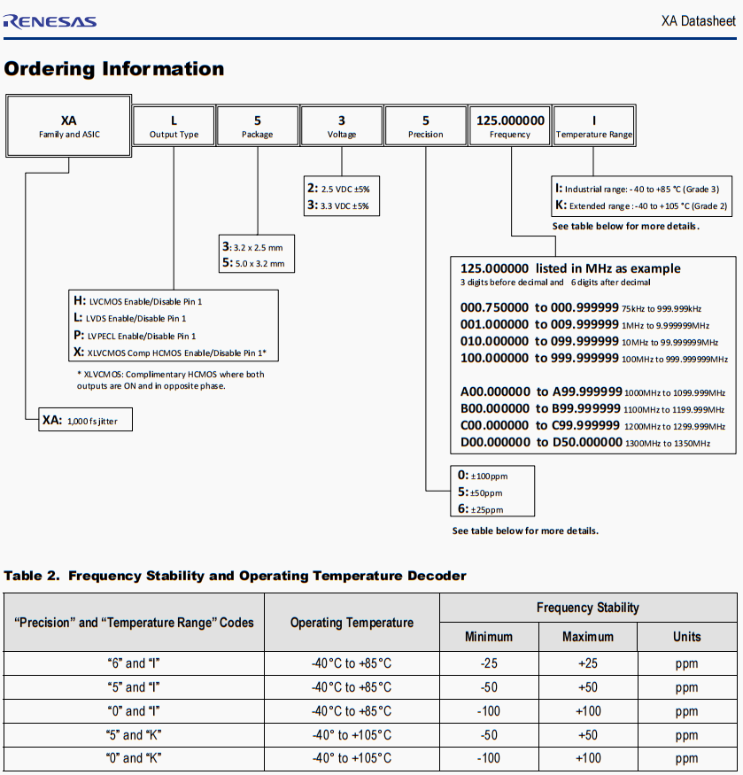 | XAH535125.000000K | Renesas晶振 | XA | 125 MHz | HCMOS | 3.3V | ±50ppm |