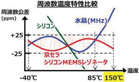 1.實(shí)現(xiàn)優(yōu)異的頻率溫度特性 隨著溫度升高,硅具有頻率溫度特性,其中直線向右下降,而石英具有三次曲線.京瓷的硅MEMS諧振器采用獨(dú)特的摻雜技術(shù),使晶振可在-40~150℃的寬溫度范圍內(nèi)實(shí)現(xiàn)+/-25ppm的窄公差.