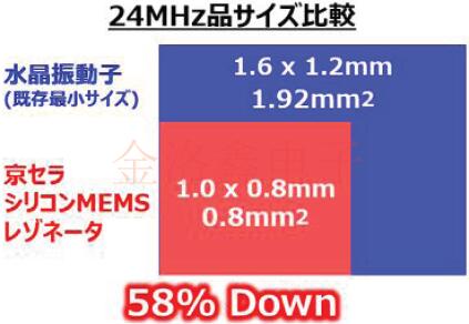 2.小型化的實(shí)現(xiàn) 對(duì)于24MHz產(chǎn)品,ESR特性通常要求為60ohm或更小,并且由于其物理特性,石英的尺寸限制為1.6×1.2mm.京瓷的硅MEMS諧振器通過(guò)其獨(dú)特的元件設(shè)計(jì)技術(shù)以1.0x0.8mm的小尺寸實(shí)現(xiàn)了所需的特性.面積比減小了58%.超小型的MEMS晶振模塊未來(lái)有可能會(huì)是主方向,但是石英晶振也會(huì)是不可或缺的,畢竟它的成本更低,而且性能方面也有優(yōu)勢(shì),無(wú)論是硅晶和石英,都是晶振主要的原材料.