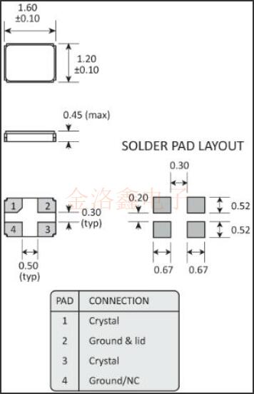 | 外型尺寸 | 1.6x1.2x0.45mm |