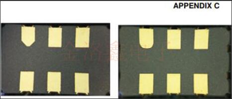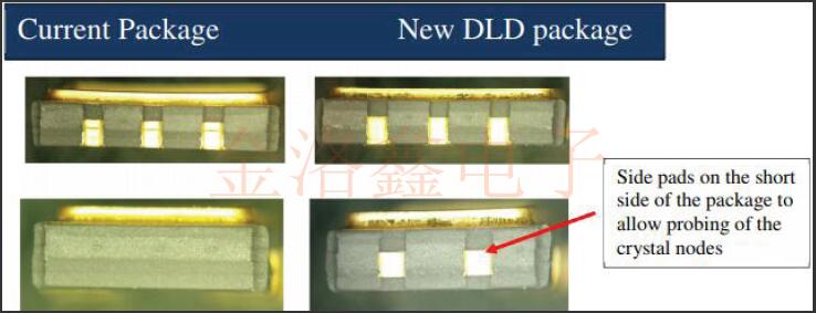 該P(yáng)CN用于通知對(duì)VV-800石英晶體振蕩器系列5x3.2mm.2mm封裝的表貼型VCXO振蕩器中使用的軟件包的更改.通過在封裝中增加外部焊盤來修改封裝,以允許在密封振蕩器之后對(duì)晶體進(jìn)行DLD和晶體阻抗(CI)測(cè)試.封裝將添加兩個(gè)外部電鍍焊盤,如下所示,以便進(jìn)行此測(cè)試,從而通過篩選可能在DLD或高阻抗相關(guān)故障之后可能浮出水面的產(chǎn)品逸出來提高輸出質(zhì)量.當(dāng)前,在發(fā)貨前沒有對(duì)該部件執(zhí)行DLD測(cè)試.振蕩器內(nèi)部組件(例如IC或晶體)和組裝過程沒有任何變化,因此產(chǎn)品性能規(guī)格不會(huì)有任何變化.
