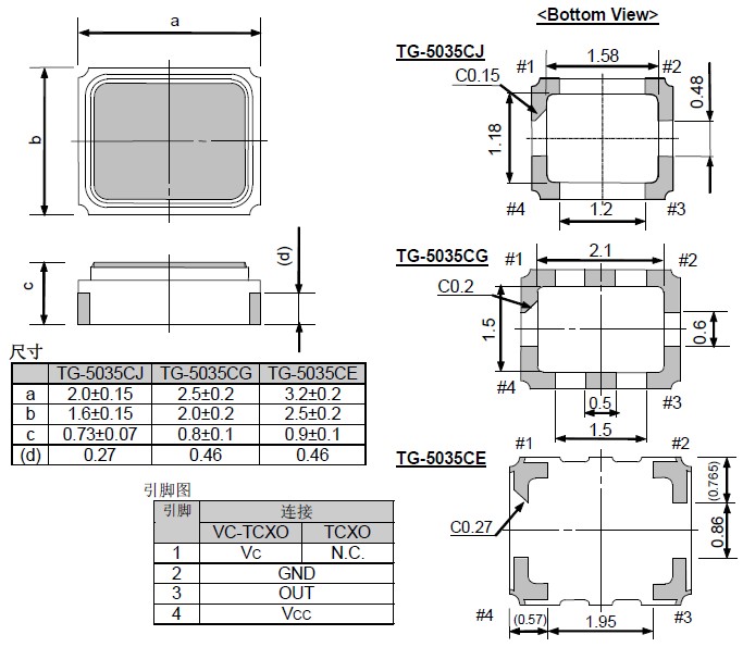 石英晶振,溫補晶振,貼片晶振,TG-5035CG晶振“TG-5035CG-13N 19.2000M3”