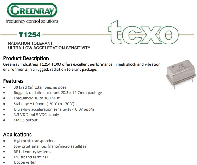 Greenray格林雷晶振T1254系列具有超低靈敏度