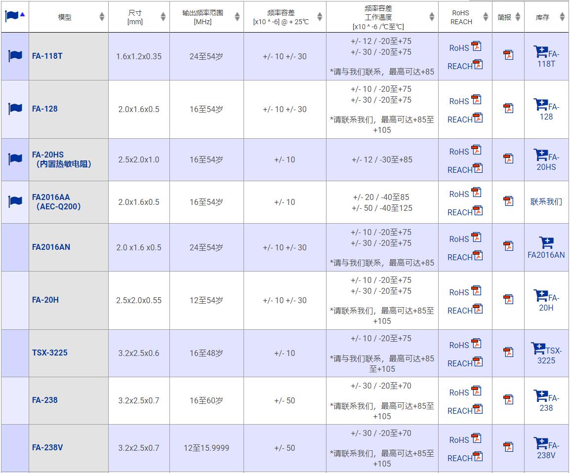 愛普生MHZ系列型號表: