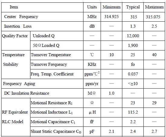 - 頻率:314.925MHz~315.075MHz