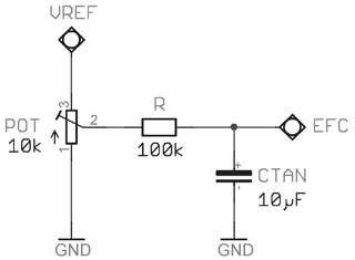 如果外部電位器用于頻率控制,其電阻應(yīng)低于EFC (VC)輸入的輸入阻抗至少五倍。
