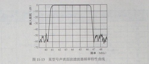 如圖11-13所示是某型號(hào)聲表面波濾波器頻率特性曲線。