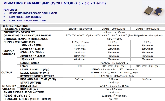 | OCETDLJANF-25.000000 | Taitien | OC | XO (Standard) | 25 MHz | CMOS | 3.3V | ±25ppm |