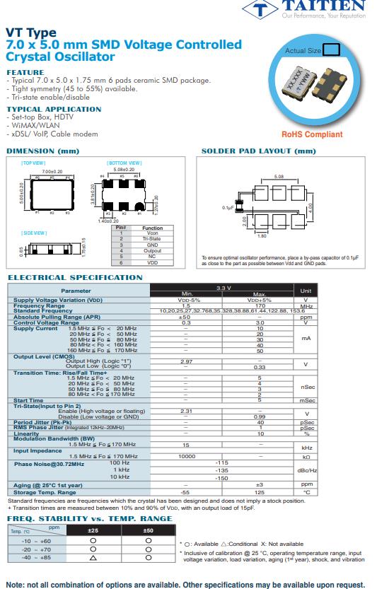 | VTEUMLJANF-25.000000 | Taitien | VT | VCXO | 25MHz | 3.3V |
