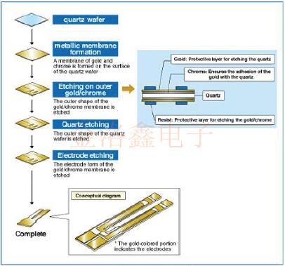 光刻技術的確令人贊嘆(圖3).工程師們在開始基本實驗后就看到了驚人的潛力,這讓他們感到驚訝.石英設備工程師Mutsumi Negita表示:"即使在基礎實驗階段,我們也可以看到我們的過程精度至少比機械方法好10倍."看起來光刻技術將是其處理方法中非常有價值的后續(xù)技術. 圖3:當時的光刻技術的工藝流程,攝影曝光技術用于從石英晶片中提取所需形狀的石英碎片,并形成微觀圖案的電極.