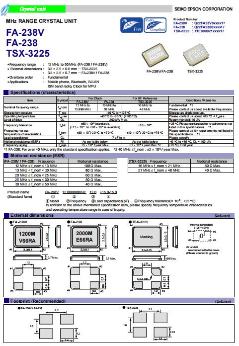 | X1E000021015516 | 3.2 x 2.5 x 0.6mm | TSX-3225 | 27.000000 MHz | 16 pF | +/-10 ppm | +/-10 ppm | -20 to +75 °C | ≤ 40 Ω |
