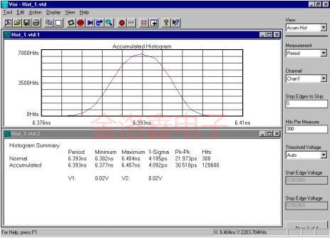 因此,給定波形的峰峰值抖動預測可以在上電后的十億個周期內(nèi)近似(具有非常高的置信度),而無需等待十億個信號周期完成.另一個高級軟件特性包括當用戶指定頻率帶寬(如12千赫至20兆赫的SONET范圍)時積分抖動的計算.根據(jù)設置中規(guī)定的石英晶振樣本測量數(shù)量,集成抖動測試將需要每單位0.5至1.5分鐘的時間.