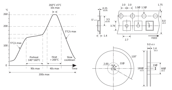 封裝尺寸:標(biāo)準(zhǔn)款2.0mm×1.6mm×0.8mm,可定制更小尺寸,采用高精度表面貼裝(SMD)設(shè)計,適配設(shè)備小型化集成需求;