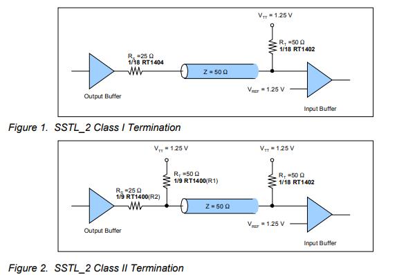 所需的終止樣式基于DDR內存應用程序。滿足EIA/JEDEC標準JESD8-9A正確信號處理要求的兩類終端如圖1和圖2所示。在0-2.5伏邏輯交換范圍內工作的2.5VI/O存儲器總線標準是SSTL_2,該標準適用于高速DDRSDRAM接口。DDR本質上不需要提高時鐘頻率就能加倍提高SDRAM的速度,它允許在時鐘脈沖的上升沿和下降沿讀出數據,因而其速度是標準SDRAM的兩倍.