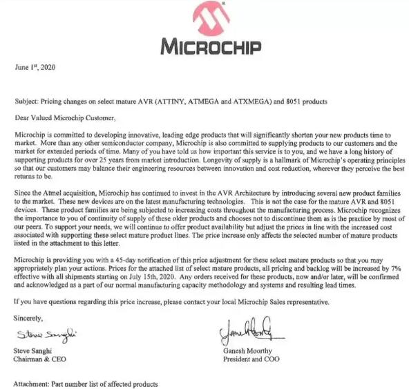 面對來勢洶洶的新冠疫情,美國當地的應對方案和措施顯示是不合格的,每天仍有萬人以上的新增感染病例,累計人數直逼200萬大頭,美國多家企業(yè)和生產工廠已經不堪重負.美國是公認的電子元件發(fā)達國家,許多國家包括中國都長期采購他們生產的種類元器件和組件,但如今因為疫情以及美國國內矛盾引發(fā)的暴亂,許多產品交期延長一倍不止,而且缺少作業(yè)人員,原材料成本上升.美國Microchip Technology Inc.公司6月1日,給所有客戶發(fā)了一封調價函,內容稱7月15號之后,旗下的部分產品單價將上調7%. Microchip是一家主要做微處理器,微控制器,頻率控制元件,數據轉換器等多種電子產品的制造商,總部位于亞利桑那州錢德勒,國內市場上有部分生產廠家,使用Microchip公司生產的石英晶體振蕩器和MEMS硅振蕩器.但是幸運的是,在調價名單中,沒有包括時鐘元件,而且一直以來Microchip晶振的性價比就比較高,同樣的規(guī)格和品質,價格一般不會很高,而且質量和口碑在業(yè)界算是比較高的.